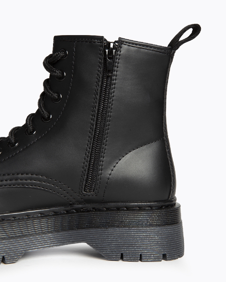 Botín tipo militar con cordones y cremallera interior en color negro. Marca Corina! Elige tu número habitual! Plataforma de 5cm