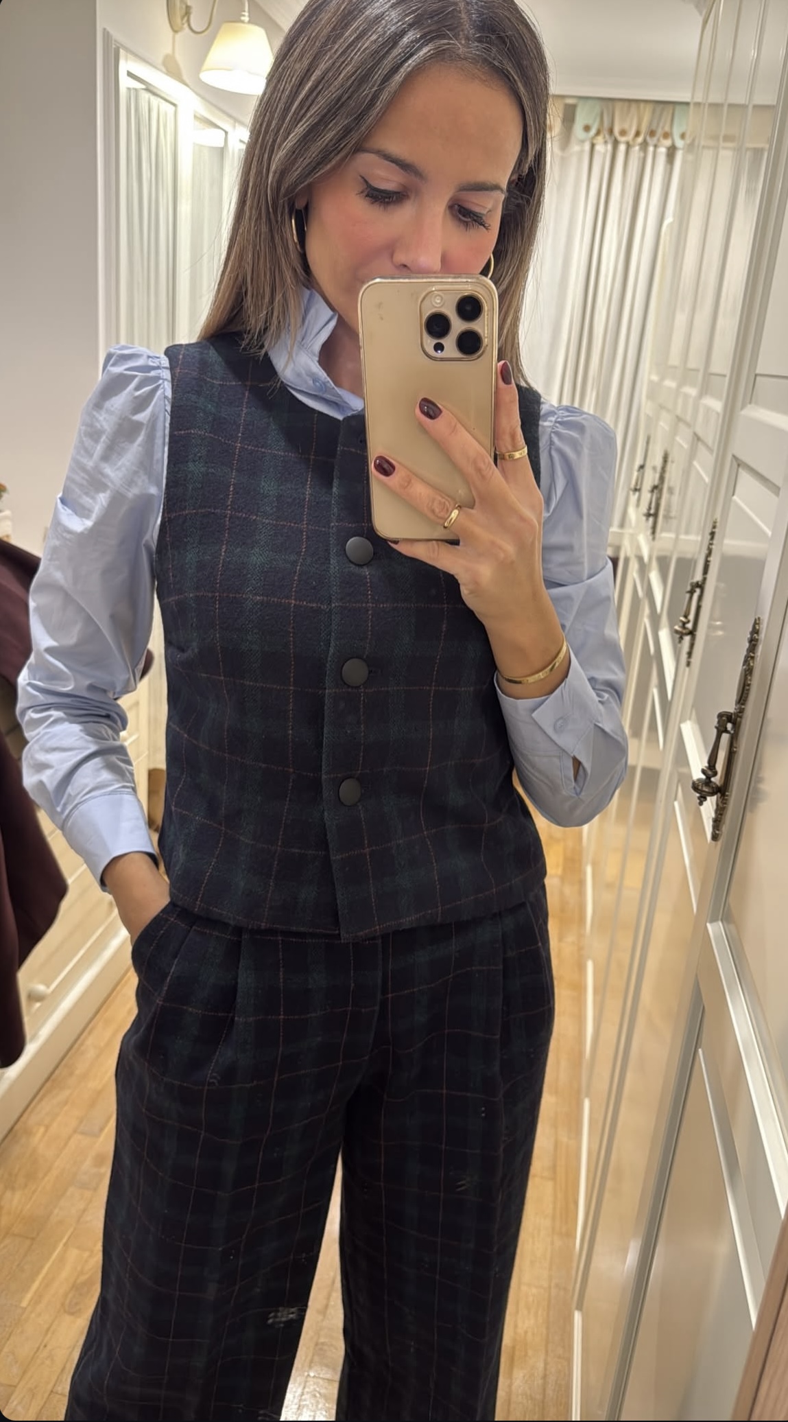 Chaleco de lana y poliéster gordito! Abriga mucho! Cuadros verdes y azules! Talla S para 34/38 Talla M para 40 Talla L 42/44