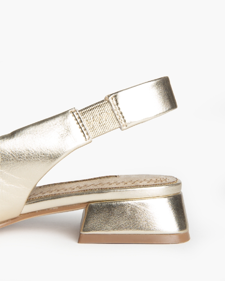 Sandalia de tacón bajo. Acabado en punta. Elástico en el lateral inte-rior. Tacón cuadrado. Altura del tacón 3 cm.